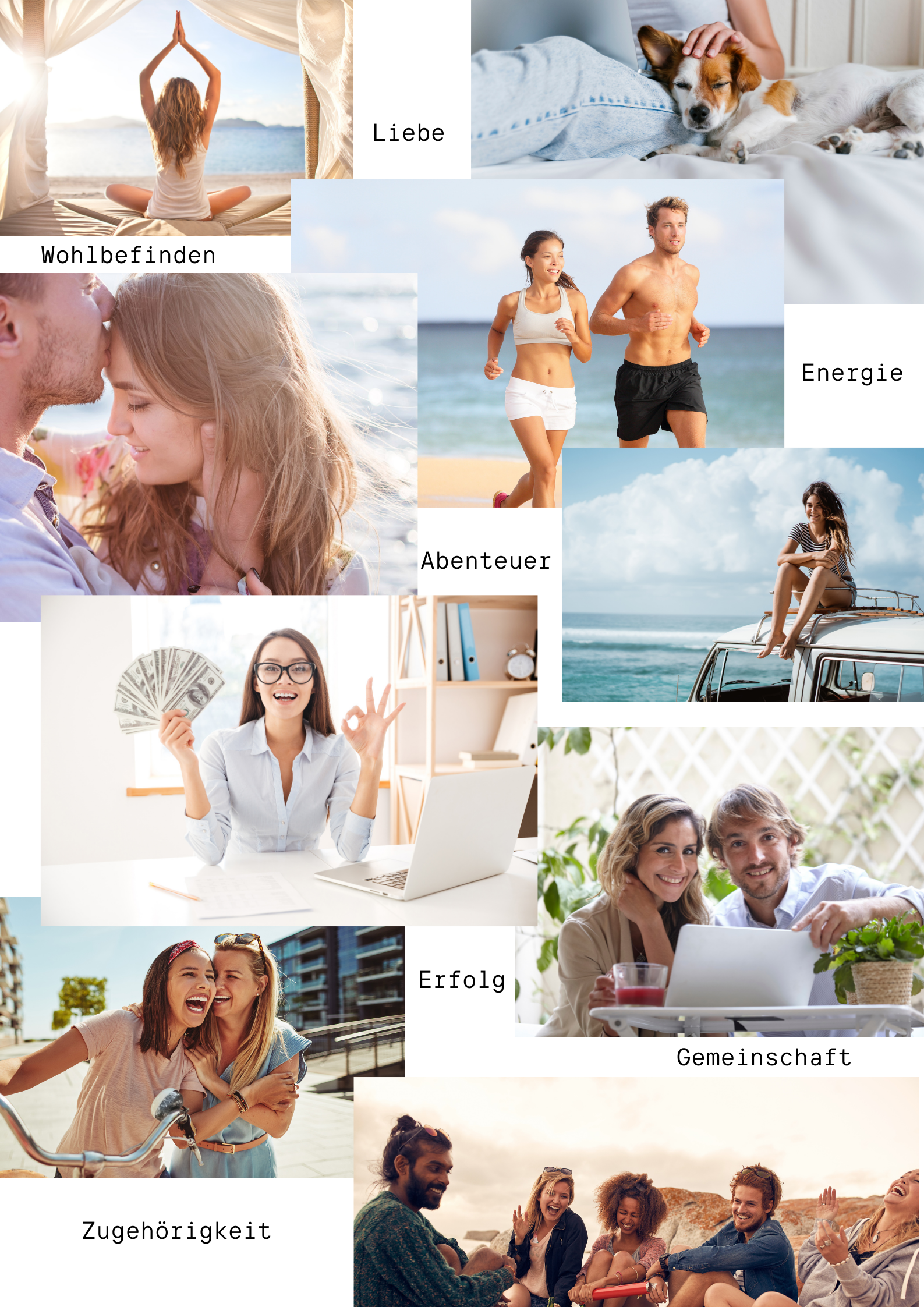 Erstelle dein persönliches Visionboard über deinen mental gesunden Lifestyle. Berücksichtige dabei die unterschiedlichen Lebensbereiche, über die wir bereits gesprochen haben. Lasse deiner Kreativität freien lauf. Als Inspiration stelle ich dir mein Visionboard zur Verfügung.